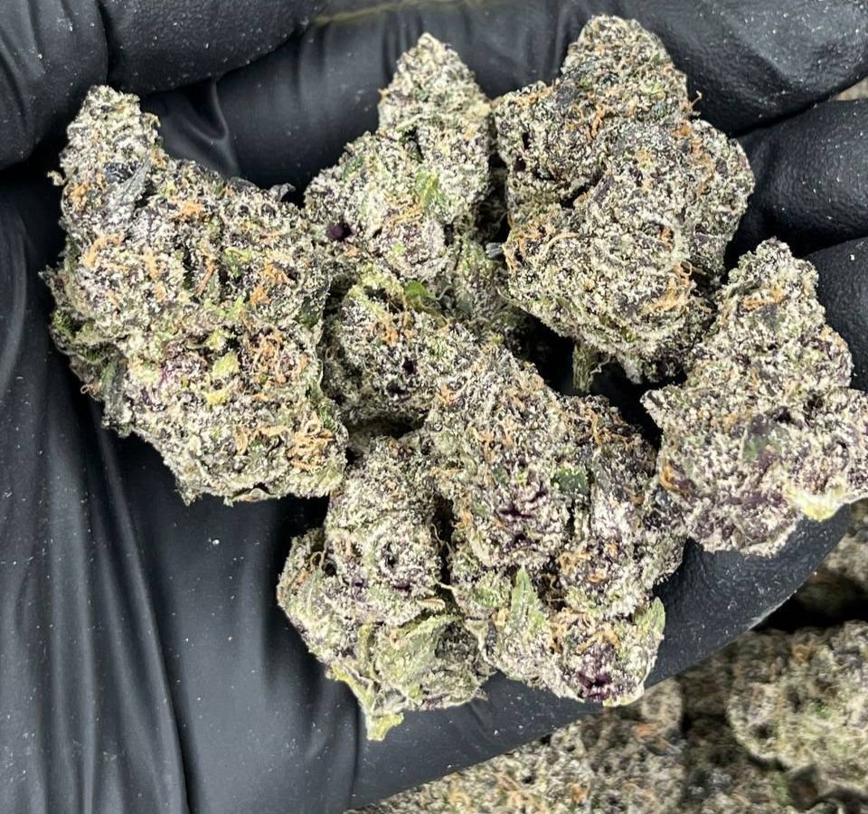 Ghost Runtz is as stunning as it is potent. The dense buds are a mesmerizing mix of green, purple, and orange hues, covered in a frosty layer of trichomes that shimmer under light.